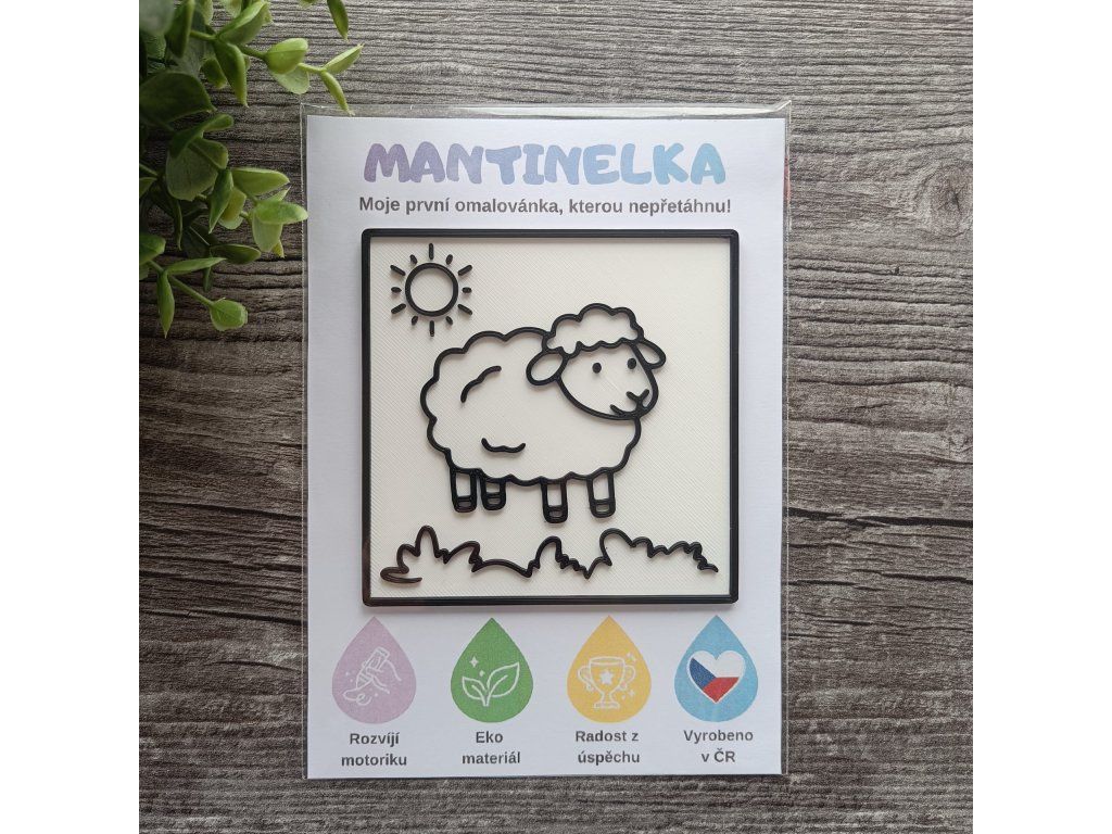 Mantinelka s motivem ovečky je ideální pro každého malého umělce. Díky vystouplým 3D konturám, které fyzicky brání přetahování, se děti mohou plně soustředit na radost z malování. Procvičuje trpělivost, jemnou motoriku a grafomotorické dovednosti.