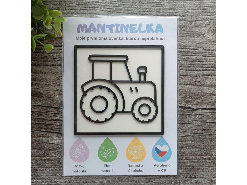 Mantinelka s motivem traktoru je ideální pro každého malého umělce. Díky vystouplým 3D konturám, které fyzicky brání přetahování, se děti mohou plně soustředit na radost z malování. Procvičuje trpělivost, jemnou motoriku a grafomotorické dovednosti.
